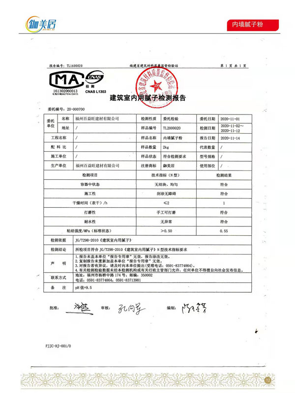 內(nèi)墻膩?zhàn)臃酆细駡?bào)告